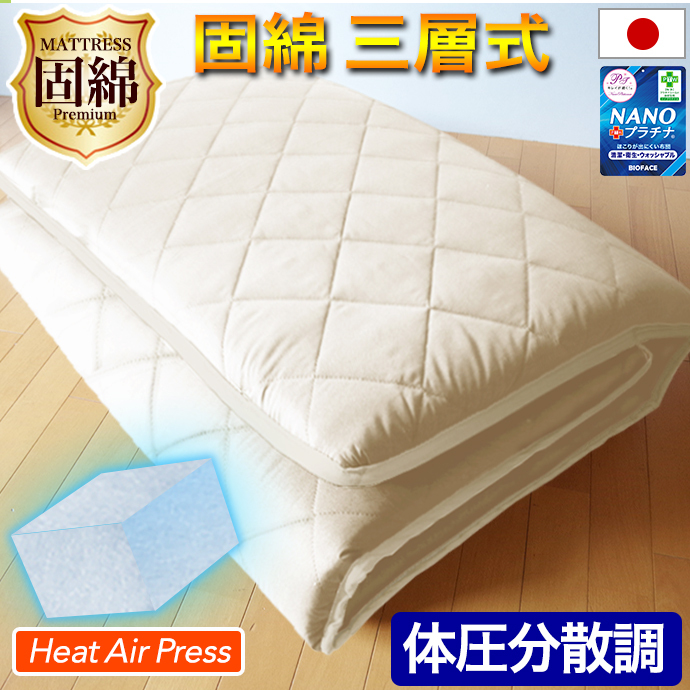 日本製 マットレス シングル 固反発 固綿 3層式 構造 高反発 マットレス ボリューム 抗菌 制菌 防臭 速乾