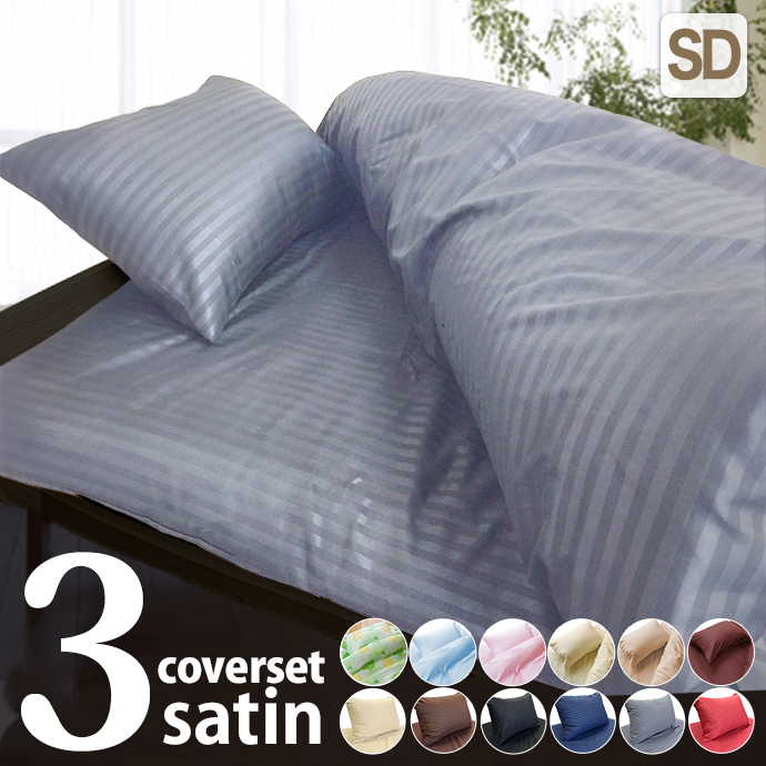 布団カバー 3点セット セミダブル 敷き布団用 ベッド用 カバー シーツ 選べるカラー 柔らか シルク調 サテン調 ホテル仕様 ホテルライク