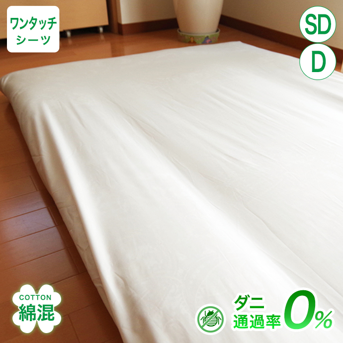 防ダニ ワンタッチシーツ セミダブル ダブル 優しい 綿混 高密度 シーツ 布団用 柔らか シルク調 サテン調 ホテル仕様 ホテルライク ダニ防止 メール便