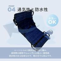 ・車椅子からベッドや車などへの移乗をサポートしてくれるシートです。クッション性があるので車椅子に直接乗るよりお尻や背中などが痛くなりにくく、快適にご使用いただけます。