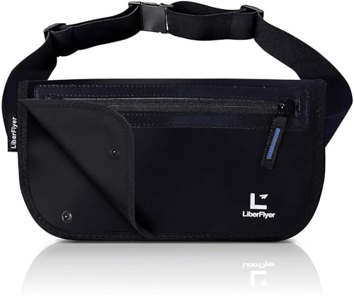 LiberFlyer セキュリポ(SECURIPO)セキュリティウエストポーチ 防水 ブラック(青ジッパー)