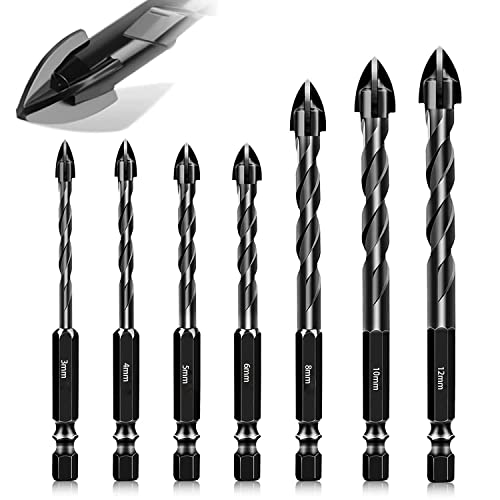 TAORAYO コンクリート ドリル ビット 陶器 ガラスドリルビット 7個入り 四刃六角軸 コンクリート ドリルビット 六角シャンクガラス ド