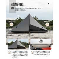・通気アップ・結露対策オリジナルデザイン、通気性の良いテント暑い気候で最大限の風通しを確保するために、アウターの扉は特定のウィビングとジッパーで半密閉式のフロントベンチレーションを作ります。左右のサイドボトムにはオープンベンチレーションメッシュが設計され、空気の対流を促進し、結露を軽減でき、より安らかな眠りを提供します