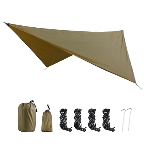 ・?軽量&ポータブル- 1 - 4人用の防水マルチシート、設営と清潔が容易。携帯バッグが付き、折りたためばコンパクトに収納でき、省スペースで軽量で携帯しやすい。小型のテントタープ。