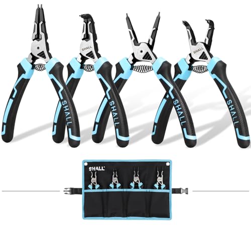 SHALL 4本組 スナップリングプライヤー Cr-V材質 穴用 直爪 軸用 曲爪 錆びにくい C型リングの着脱 バネ付き 工具 作業 修理 ポ