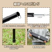 ・?5段連結式で収納もラクラク:1本のタープポールは5本継ぎで、収納時はわずか41cm5段連結式のデザインで、最短74cm〜最長185cmまで4段階の長さ調節ができます。重量は約1.2KGで、女性でも簡単に持ち運べるコンパクト設計です。旅行やキャンプの際も場所を取らず、便利に携帯できます。