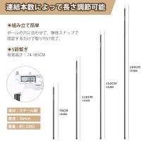 ・?材質ポール本体:スチール 収納袋:ポリエステル/重量約1200gサイズ組立時:直径1.6cm×有効長74cm〜185cm ?強度抜群の鉄製:16mmの太さの鉄製素材を使用しており、従来品より2倍の耐久性を実現。