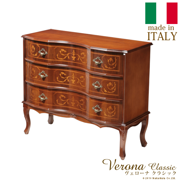 イタリア 家具 ヴェローナクラシック 猫脚3段チェスト W87cm 猫脚 輸入家具 アンティーク風 イタリア製 おしゃれ 高級感 木製 天然木 リモート 在宅