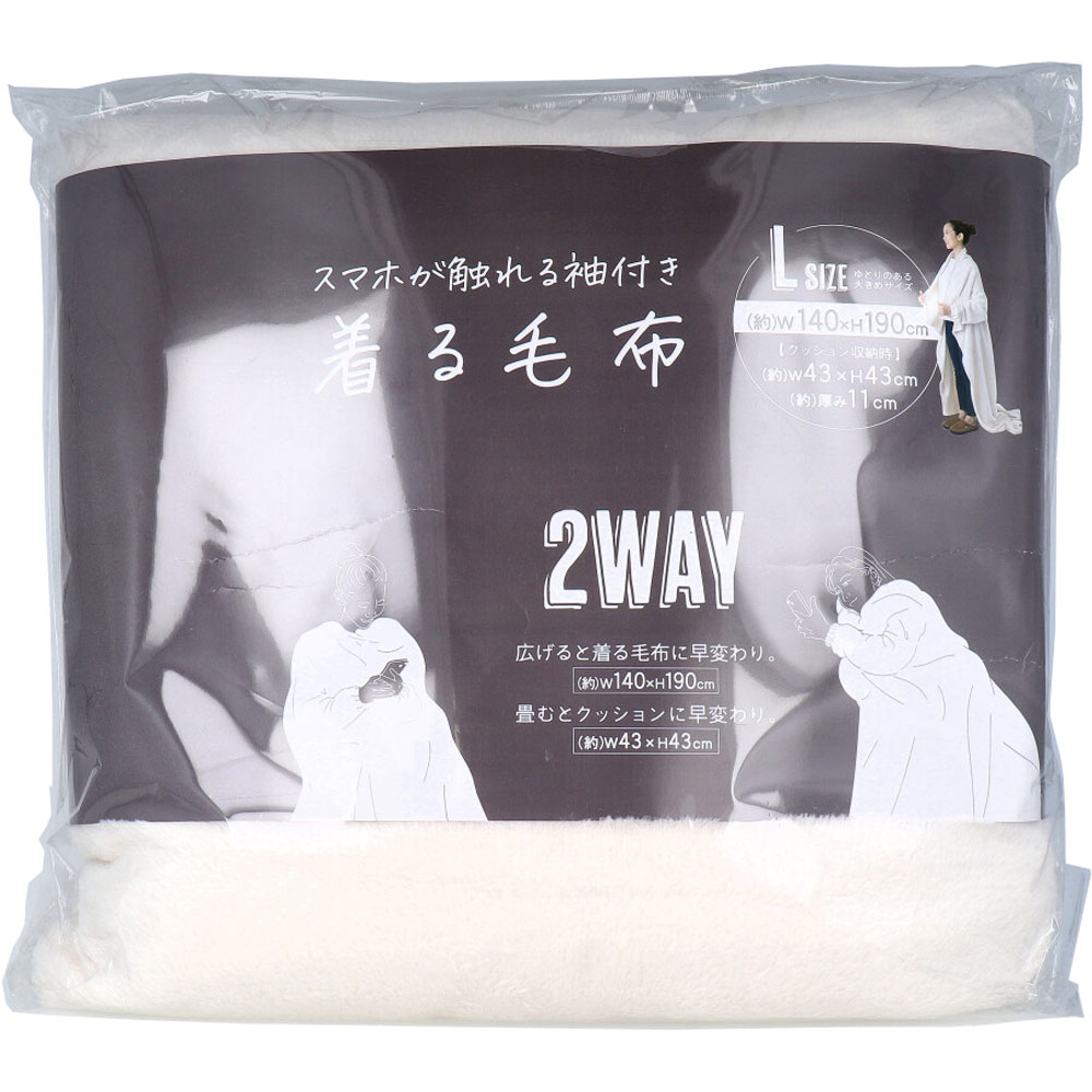 スマホが触れる袖付き着る毛布 2WAY ミルキーベージュ Lサイズ 1枚入