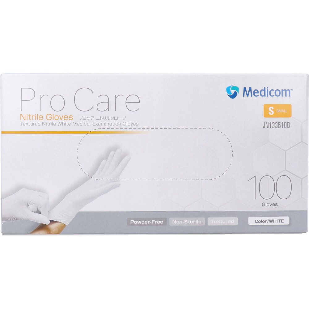 【商品仕様】【一般医療機器】製造販売届出番号:28B3X00001000065販売名:プロケアニトリルグローブ ホワイト【サイズ】★共通・全長:約230mm以上・掌部厚み:0.05mm以上・指先厚み:0.09mm以上★掌部幅・XSサイズ:約70mm・Sサイズ:約80mm・Mサイズ:約95mm・Lサイズ:約110mm【使用方法等】・箱を開封して、グローブを取り出し装着する。【注意事項】【禁忌・禁止】・再使用禁止。【使用上の注意】★使用注意・複数の患者には使用しないでください。・ニトリルゴムは、体質により痒み、かぶれ、発疹などの症状をまれに起こすことがあります。このような症状を起こした場合には使用を中止し、適切な処置を施してください。・包装が破損していたり、汚損していたり、異物などの異常が認められた場合には、使用しないでください。・刃物等鋭利な器具に触れると破れたり、穴があくことがありますのでご注意ください。・本品を廃棄する場合は、感染防止に留意し安全な方法で処分してください。★相互作用・薬品、溶剤等によっては膨張したり、浸透したりする場合がありますので確認の上、使用してください。【メーカ】A.R.メディコム・インク・アジア・リミテッド【生産地】中国
