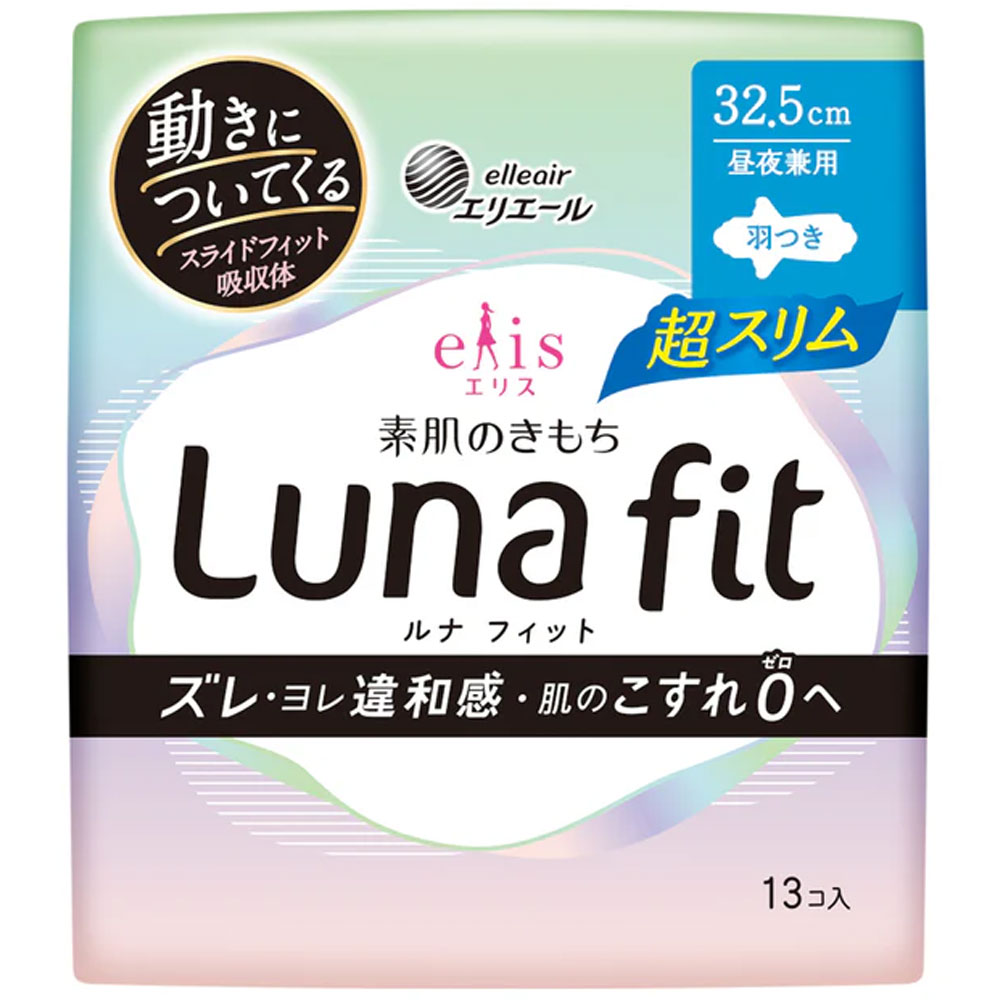 エリス 素肌のきもち ルナフィット超スリム 昼夜兼用 羽つき 32.5cm 13個入