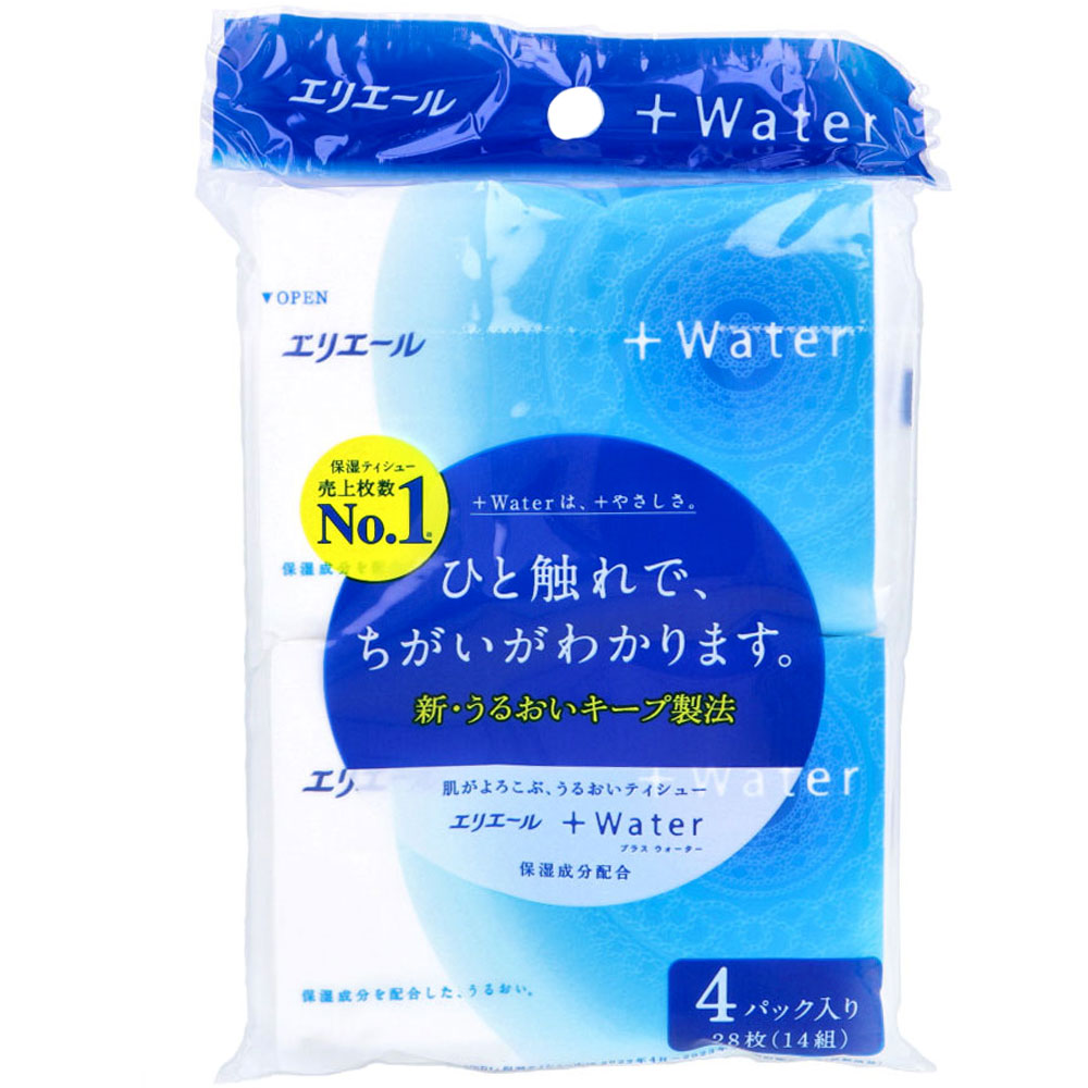 エリエール +Water(プラスウォーター)ポケットティシュー 28枚(14組)×4個パック