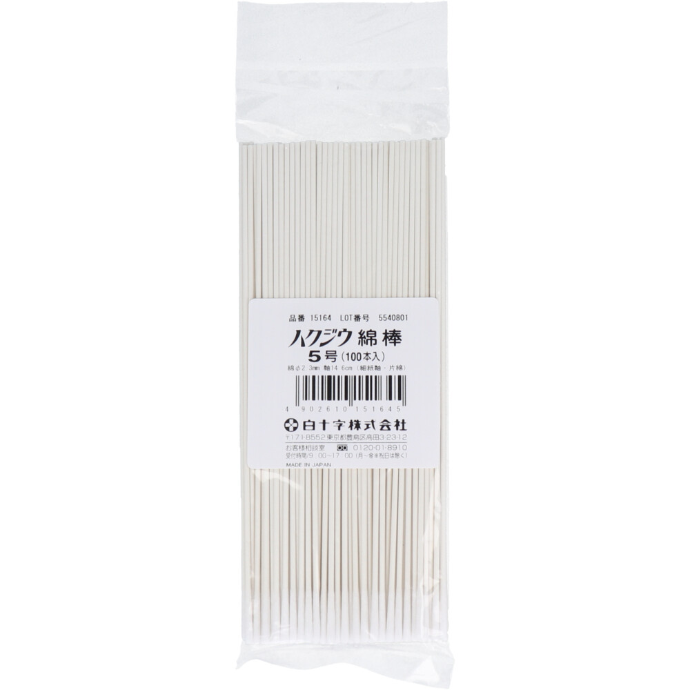 白十字 ハクジウ綿棒 5号 100本入