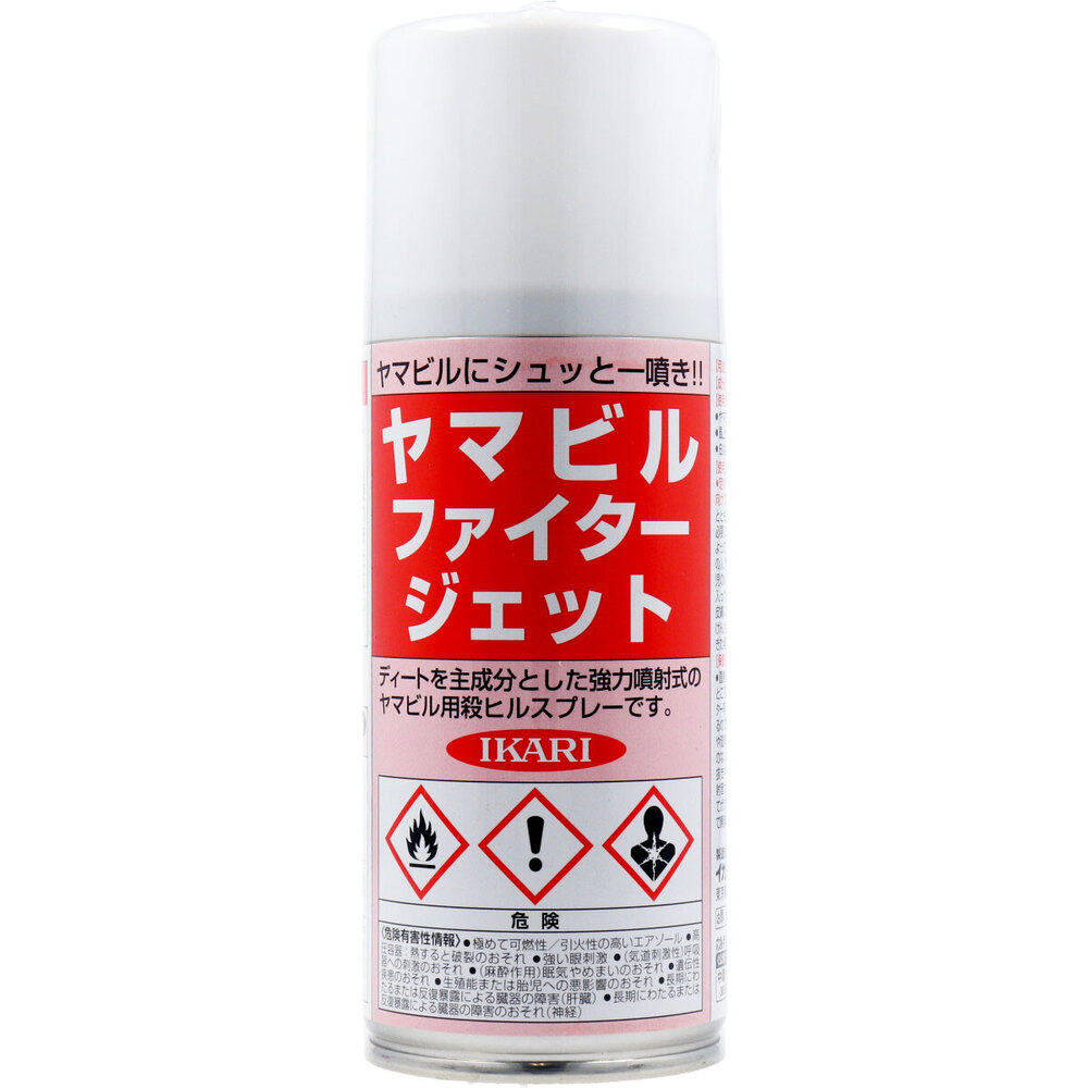 【商品仕様】【用途】ヤマビルの駆除【成分】ジエチルトルアミド、ヒバ油【使用方法】・ヤマビルに直接噴霧してください。・風上から風下に向かって噴霧してください。・缶は立てて使用してください。【注意事項】【注意】★使用上の注意・定められた使用方法を厳守すること。・人、ペットに向けて噴霧しないこと。・薬剤を浴びないようにするとともに、噴霧気体を吸い込まないように注意すること。・必要に応じて保護マスク等を使用すること。・薬剤によってアレルギー症状やかぶれなど起こしやすい体質の人、気管支系疾患(喘息等)のある人、病人、妊婦、乳幼児のいる場所では使用しないこと。・誤って眼や口に入った場合は、速やかに大量の水で洗い流すこと。・皮膚にかけないこと。誤って皮膚に付着した場合は、石けんと水でよく洗い流すこと。・万一、身体に異常が起きた場合は、直ちに医療処置を受けること。★保管上・廃棄上の注意・直射日光を避け、なるべく冷所で子供の手の届かないところに保管すること。・車の中や暖房器具(ファンヒーター等)の付近に置くと温度が上がり破裂する危険があるので置かないこと。また、缶のサビを防ぐため、水回りや湿気の多い場所に置かないこと。廃棄の際は、火気のない通気性のある屋外でガス抜きキャップを利用するか、噴射音が消えるまでボタンを押してガスを抜き、地域の規則に従って廃棄してください。★危険危険有害性情報・極めて可燃性/引火性の高いエアゾール・高圧容器:熱すると破裂のおそれ・強い眼刺激性・(気道刺激性)呼吸器への刺激のおそれ・(麻酔作用)眠気めまいのおそれ・遺伝性疾患のおそれ・生殖能または胎児への悪影響のおそれ・長期にわたるまたは反復暴露による臓器の障害のおそれ(神経)★火気と高温に注意高圧ガスを使用した可燃性の製品であり、危険なため、下記の注意を守ること。・炎や火気、の近くで使用しないこと。・火気を使用している室内で大量に使用しないこと。・高温にすると破裂の危険があるため、直射日光の当たる所や火気などの近くなど高温が40度以上となる所に置かないこと。・火の中に入れないこと。・使い切って捨てること。高圧ガス・・・LPG【メーカ】イカリ消毒株式会社【生産地】日本