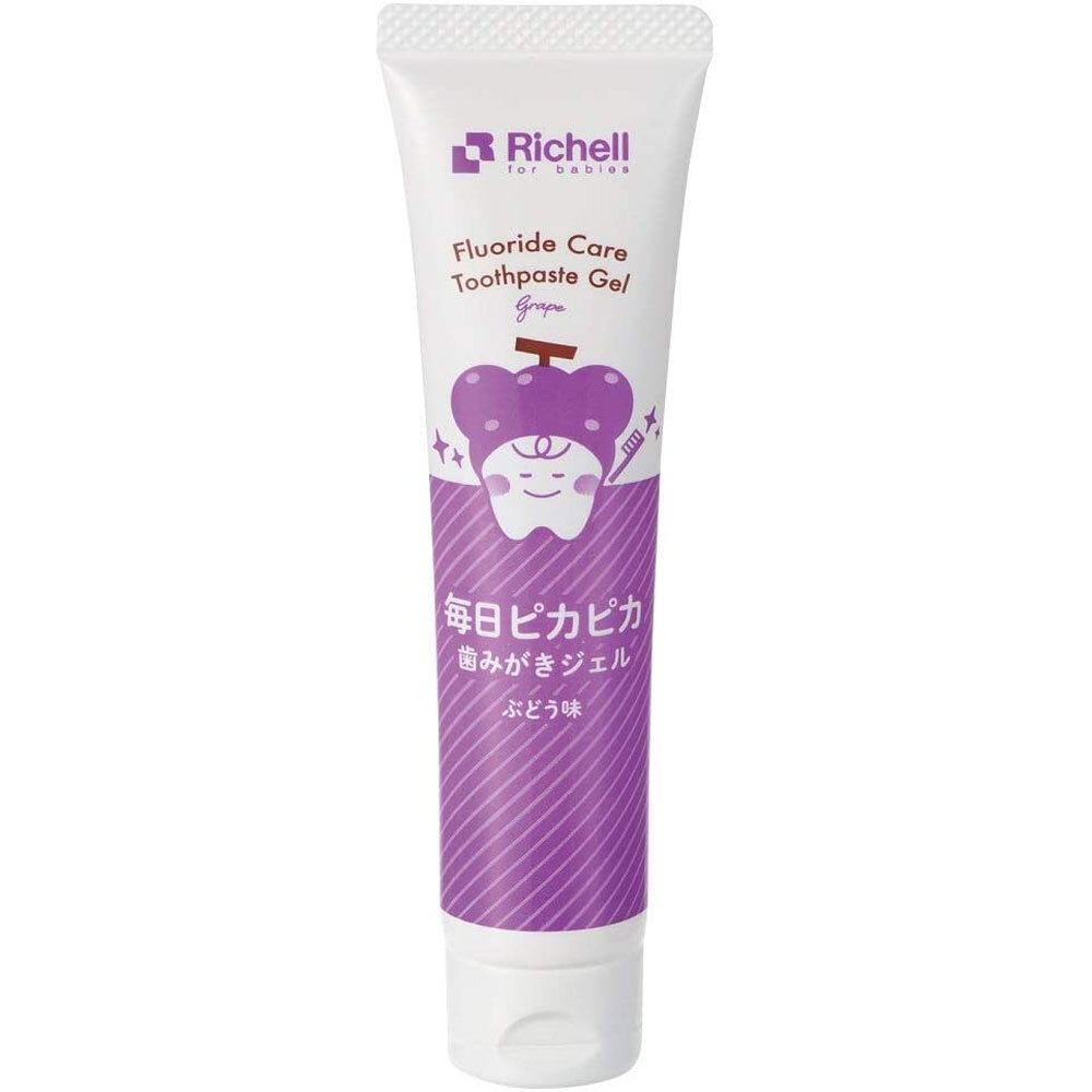 【商品仕様】【医薬部外品】【対象月齢】1才6ヶ月頃から【成分】基剤:水湿潤剤:D-ソルビトール、グリセリン増粘剤:タマリンドシードガム湿潤剤:PG基剤:エタノール増粘剤:CMC・Na可溶剤:グリセリン脂肪酸エステルpH調整剤:リン酸水素二ナトリウム、DL-リンゴ酸有効成分:フッ化ナトリウム甘味剤:キシリトール、サッカリンNa防腐剤:安息香酸Na着香剤:香料(ぶどうタイプ)【使用方法】適量を歯ブラシにとり、歯と歯ぐきを優しく磨き、磨いた後はうがいをしてすすぎます。うがいができない場合はナップで口内についたジェルをふき取ってください。【注意事項】【注意】・用途以外で使用しないでください。・食べ物ではありません。・キズなど、口内や唇に異常があるときは使用しないでください。・発疹、かゆみなどの異常が現れた場合、使用を中止し、本品を持参して医師に相談してください。・目に入らないよう注意してください。万一、目に入った場合、すぐにきれいな水で十分に洗い流してください。・お子様の手の届かないところに保管してください。・使用後、必ずキャップを閉めてください。・お子様が使用する際、必ず保護者の目の届くところで使用させてください。【メーカ】株式会社リッチェル【生産地】日本