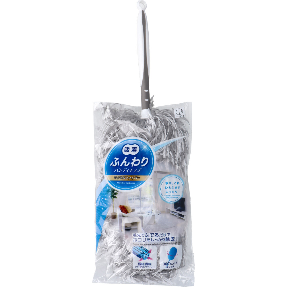 【商品仕様】【材質】モップ/ポリエステル、芯/スチール、持ち手/ポリプロピレン、エラストマー、キャップ/ポリプロピレン【サイズ】全長/約37cm【使い方】表面をなでるようにして、ホコリや細かなチリをキャッチします。身近に置いて、ホコリが気になったときに、すぐ使えるようにすると、キレイをキープできます。汚れたら水洗いして乾かせば、繰り返し使えます。【注意事項】【使用上の注意】・強く押し付けると、モップの中芯で対象物を傷つける恐れがあります。使用時は毛先で軽くなでるようにしてください。・自動車のボディ、モニター、ピアノ等傷つきやすいデリケートな素材の表面への使用はお避けください。・強く振り回すと変形する場合があります。・本品に起因するその他損害賠償につきましては責任をおいかねますのでご了承ください。・火のそばや高温多湿、直射日光のあたるところに置かないでください。・使用状況、保管場所、保管状態、長期間の使用により劣化する場合があります。また、衝撃、分解等は破損の原因になります。・素材特有のニオイがありますので、ご了承ください。・製造ごとに色のバラつき等が生じる場合があります。・お子様の手の届かないところに保管してください。・本来の用途以外には使用しないでください。・廃棄の際は各地方自治体の廃棄区分に従ってください。【メーカ】株式会社小久保工業所【生産地】中国