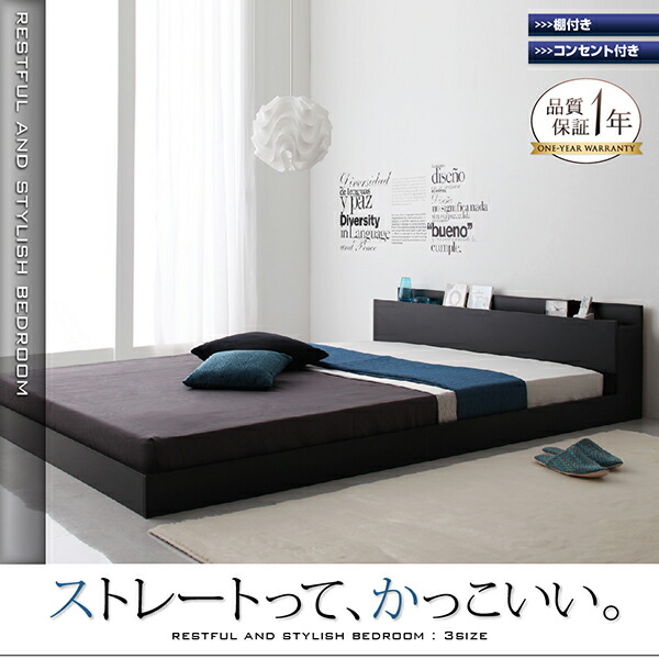 棚・コンセント付きフロアベッド スタンダードボンネルコイルマットレス付き シングル