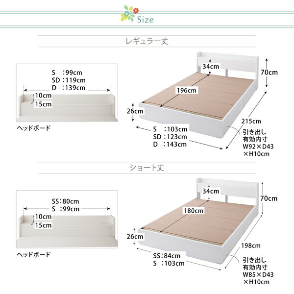 ベッド ホワイト 白 真っ白 かわいい 可愛い 収納ベッド 収納付き 引き出し コンセント スタンダードボンネルコイル マットレス付き 専用リネンなし シングル