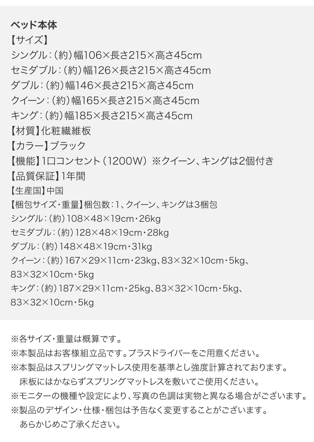 棚・コンセント付きフロアベッド スタンダードボンネルコイルマットレス付き シングル