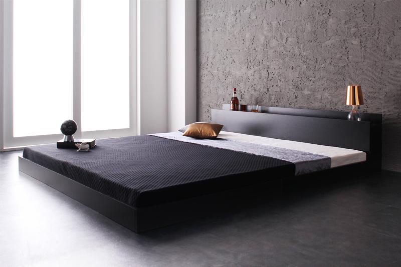 棚・コンセント付きフロアベッド スタンダードボンネルコイルマットレス付き セミダブル