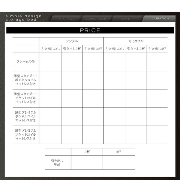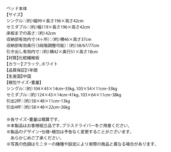 引出し4杯 セミダブル