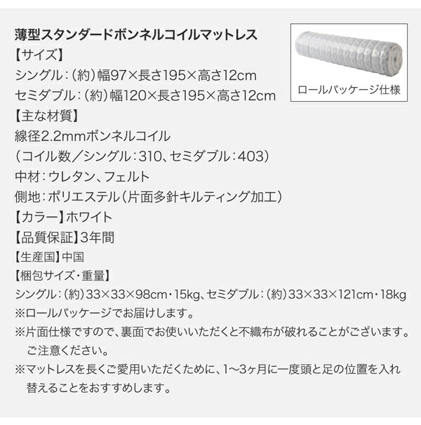 薄型スタンダードボンネルコイルマットレス付き (現在表示中)