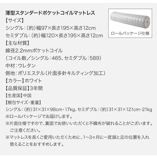 薄型スタンダードポケットコイルマットレス付き