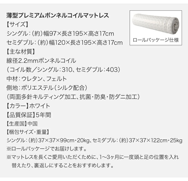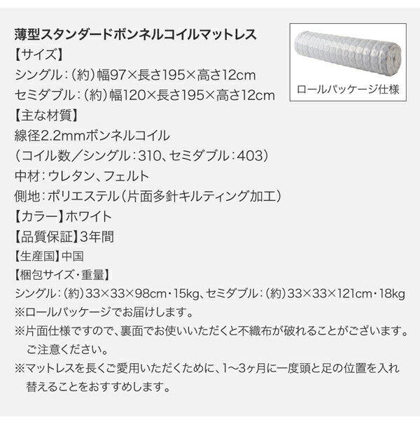 ベッド 収納付きベッド フィッツ マットレス付き 収納 収納付 収納ベッド 薄型スタンダードボンネルコイルマットレス付 引き出しなし ハイタイプ シングル