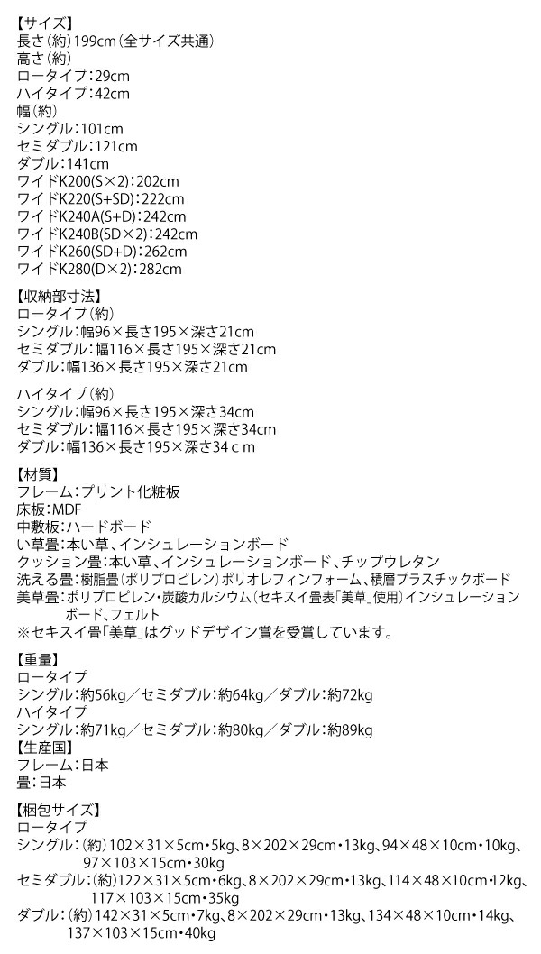 日本製・布団が収納できる大容量収納畳連結ベッド 専用別売品(敷き布団) シングル