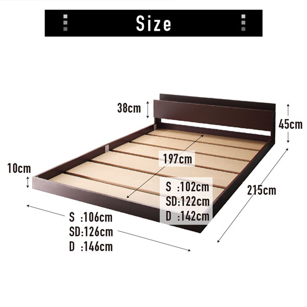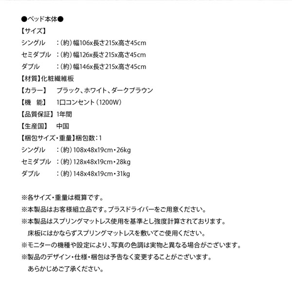 棚・コンセント付きフロアベッド スタンダードボンネルコイルマットレス付き シングル