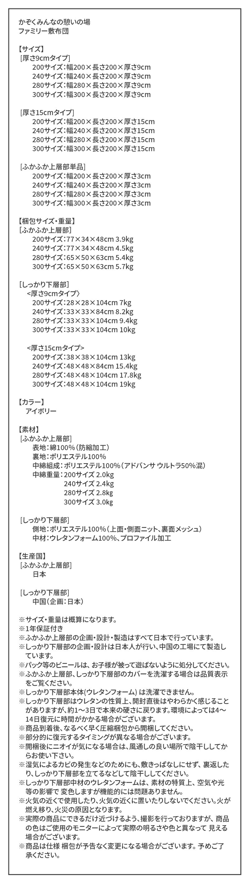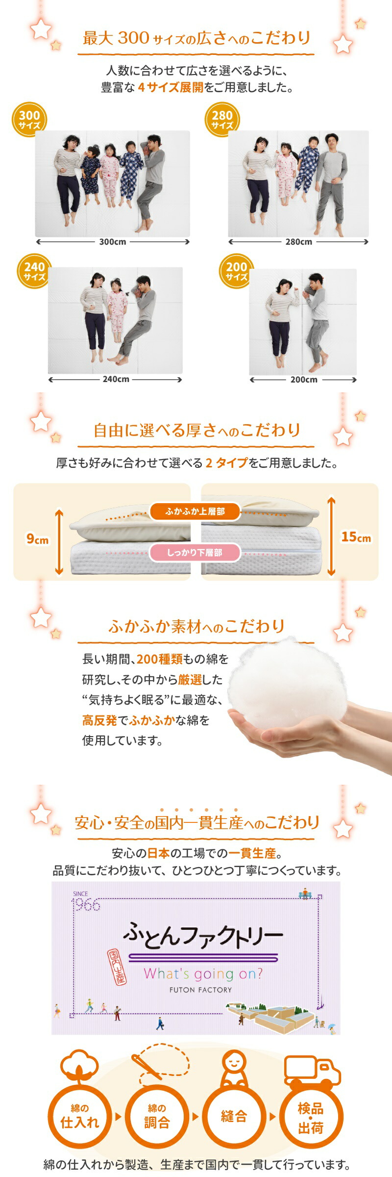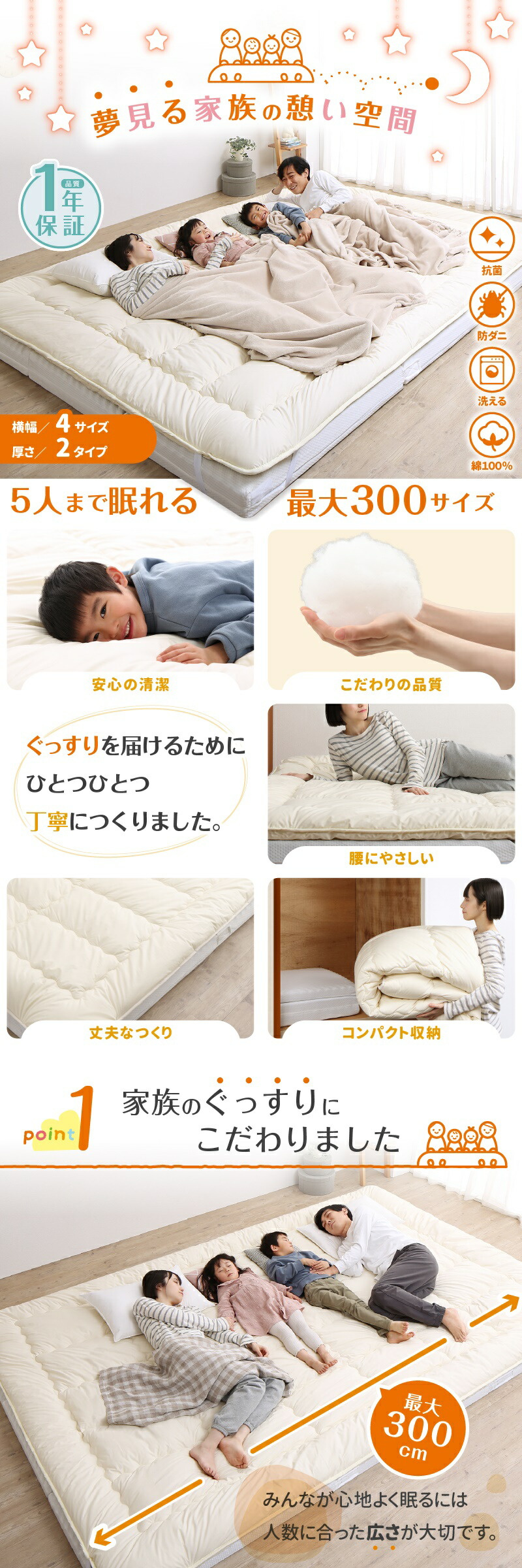 敷布団 敷き布団 マットレス ワイドキング ファミリー 大きい 大きいサイズ 子供 家族 5人 4人 3人 布団 収納 折りたたみ 上層部単品 幅200cm 厚さ3cm