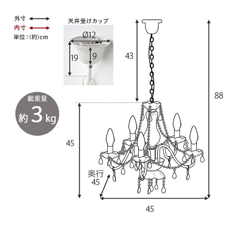 (約)幅45×奥行45×高さ45cm (ソケット部+チェーン長さ:43cm)