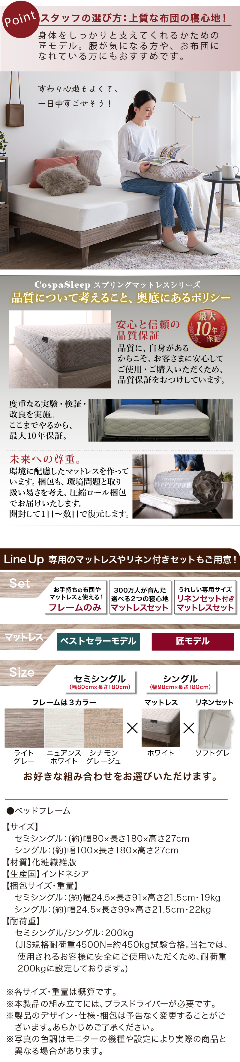 専用リネン2点&匠モデルマットレス付