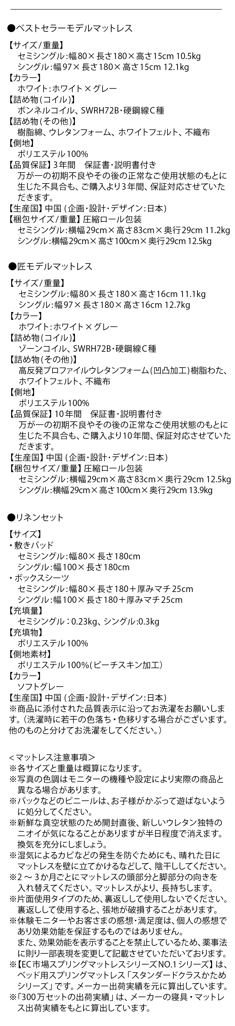 専用リネン2点&ベストセラーモデルマットレス付
