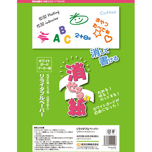 欧文印刷 消せる紙 A3(8枚入) PNCGSA3W08