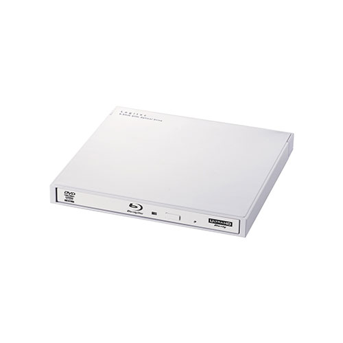 国内最小クラス、コンパクト設計のポータブルブルーレイドライブ、ホワイトモデル。動画再生・編集・データ書込ソフトを無償でダウンロード提供。 ODD,Blu-ray