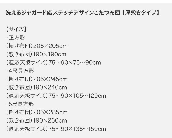 こたつ こたつ布団 おしゃれ 洗えるデザインこたつ布団シリーズ 敷き布団単品 厚敷きタイプ 190×190cm