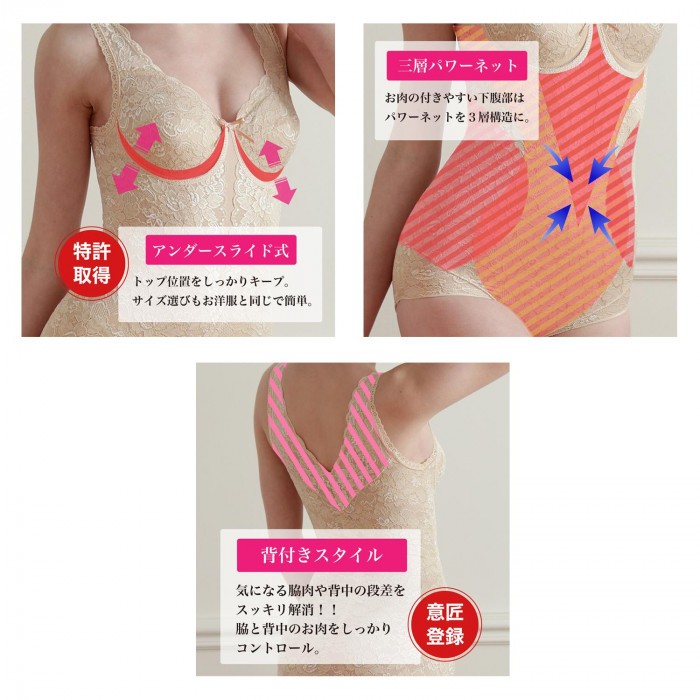 美しさと快適さ、そして高いフィット感が特徴の補正下着です。 ※この商品はアンダーバスト基準でお選びください。 ※モニターの設定などにより、実際の商品と色味や素材の見え方が異なる場合がございます。 |