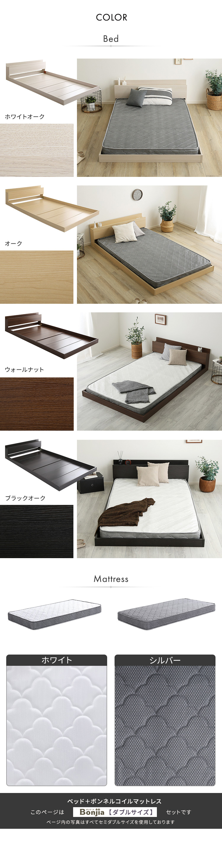 デザインフロアベッド ボンネルコイルマットレスセット(ダブル)