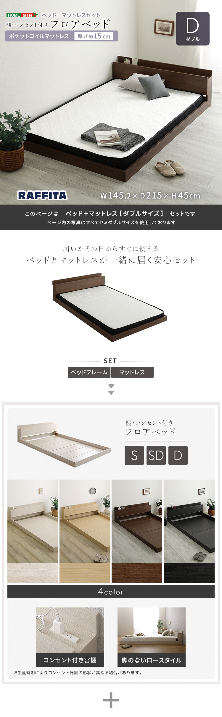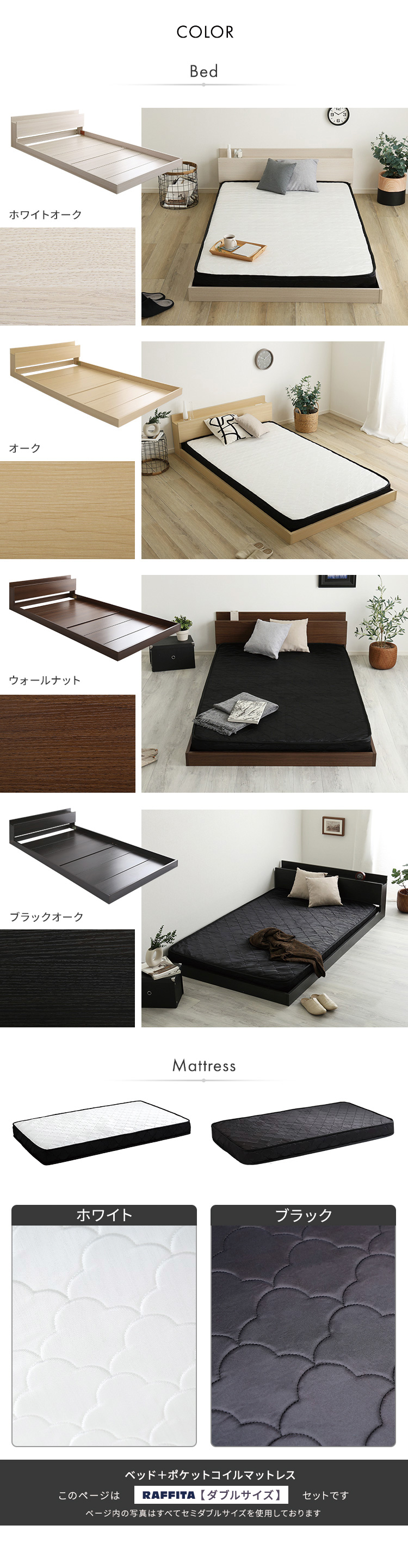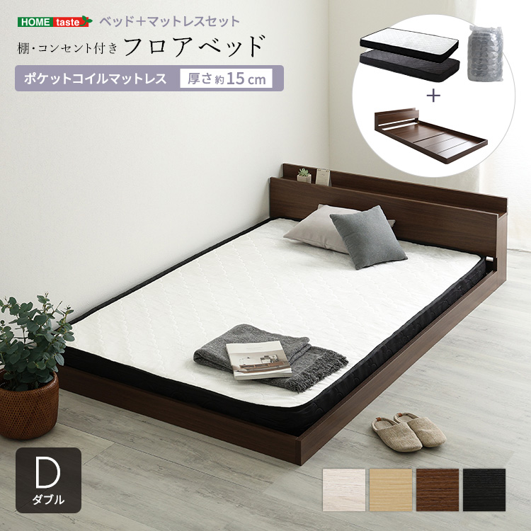 デザインフロアベッド ポケットコイルマットレスセット(ダブル)