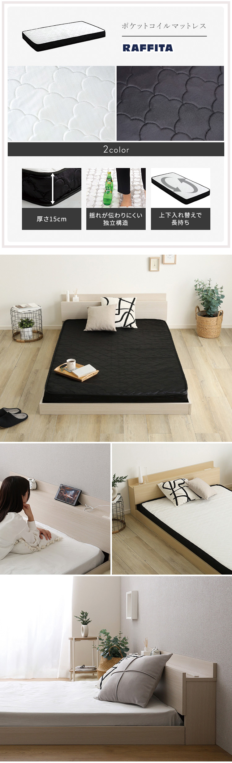 マットレス:ポケットコイル、不織布、ウレタンフォーム、ニット生地(ポリエステル100%)