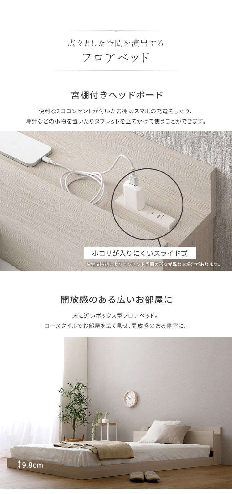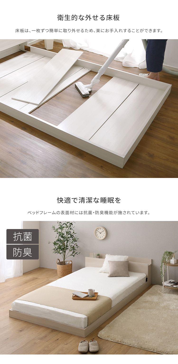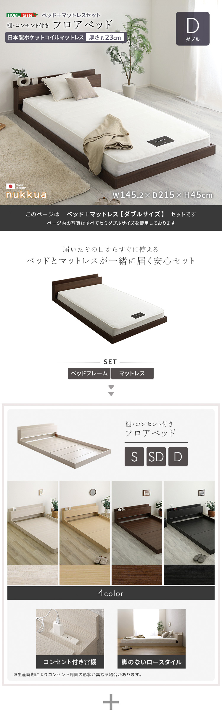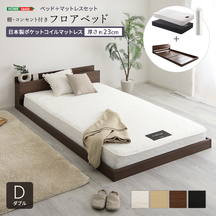 デザインフロアベッド 日本製ポケットコイルマットレスセット(ダブル)