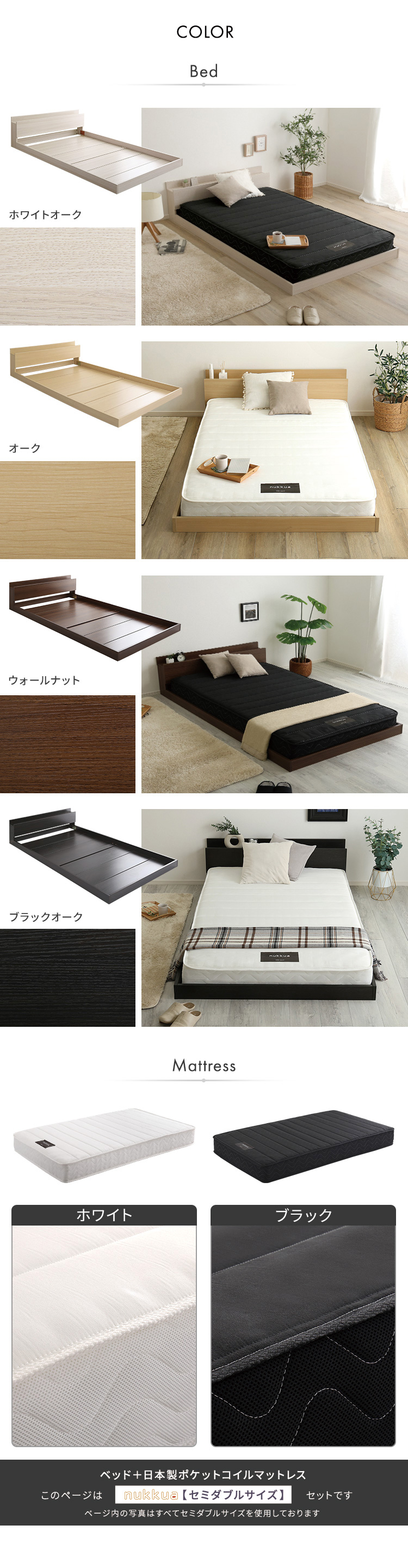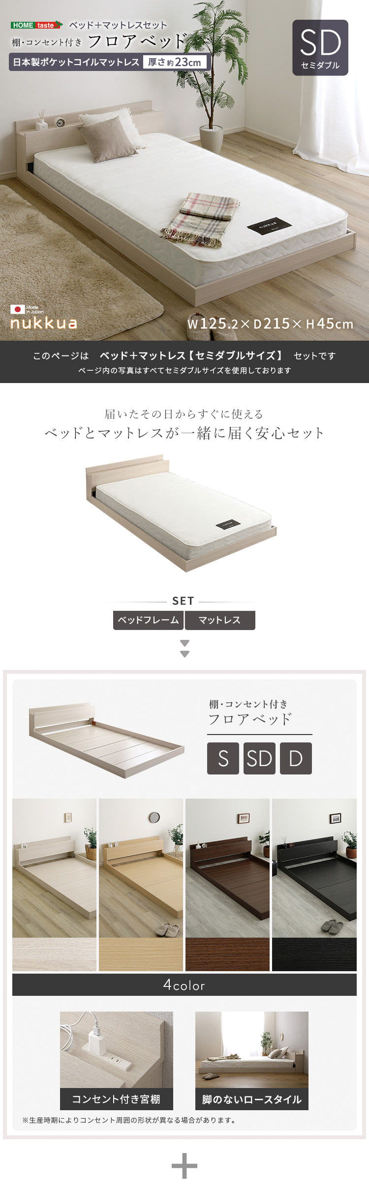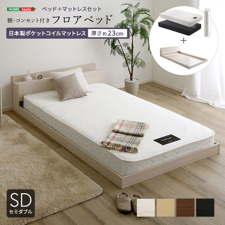 デザインフロアベッド 日本製ポケットコイルマットレスセット(セミダブル)