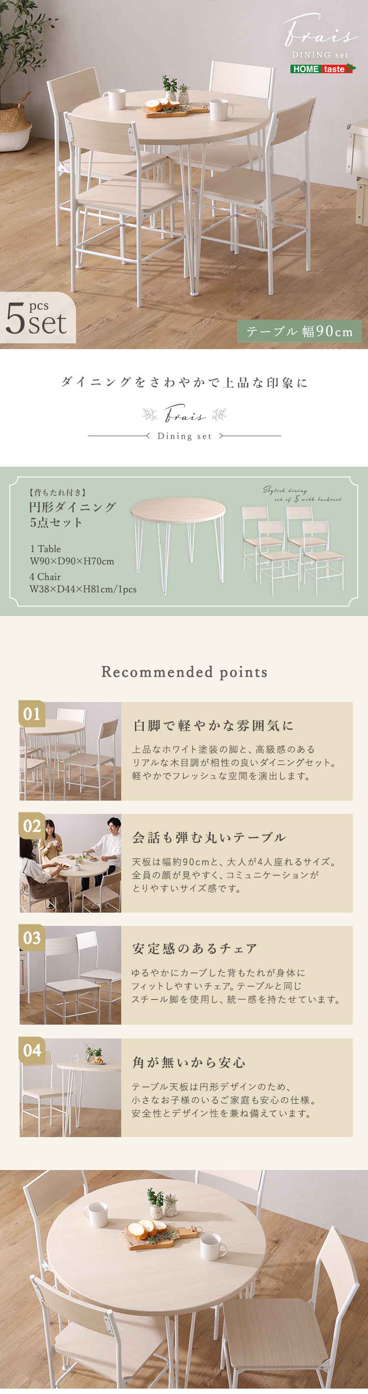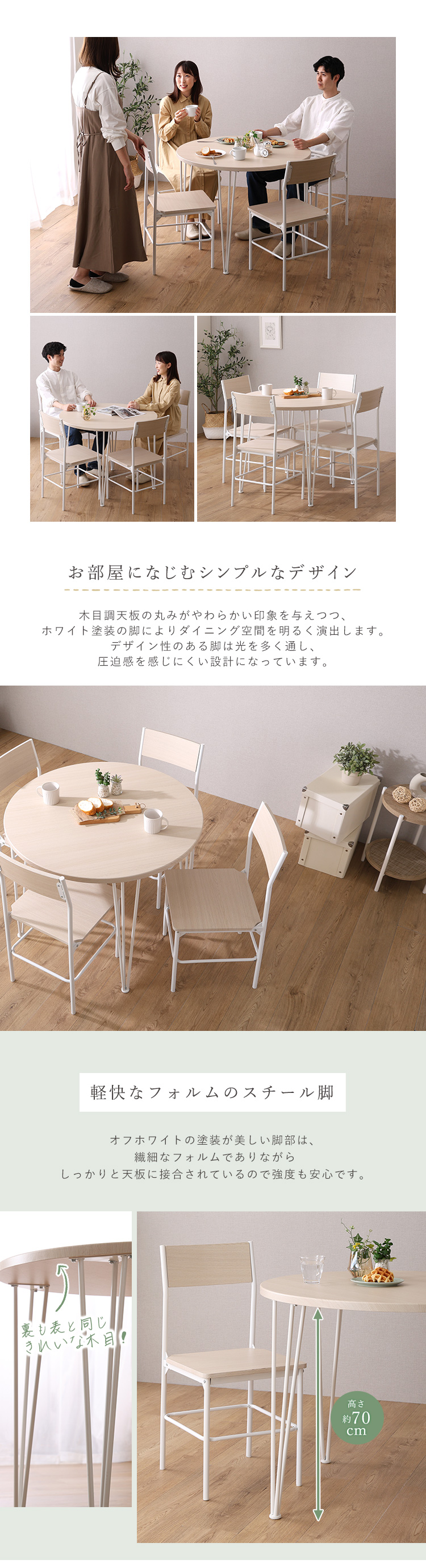 さわやかな円形ダイニング5点セット