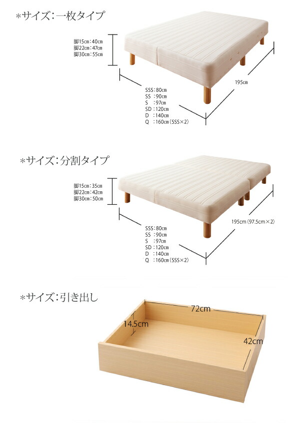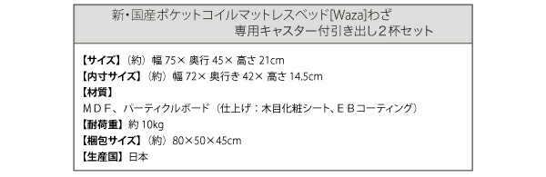 新・国産ポケットコイルマットレスベッド 専用別売品(キャスター付き引き出し2杯セット)