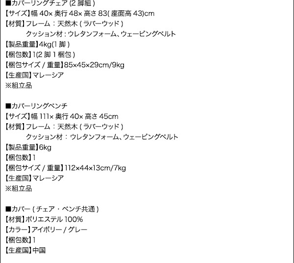 ベンチカバー 無段階に広がる スライド伸縮テーブルダイニングシリーズ ベンチ別売りカバー単品 2P 【ts111610】