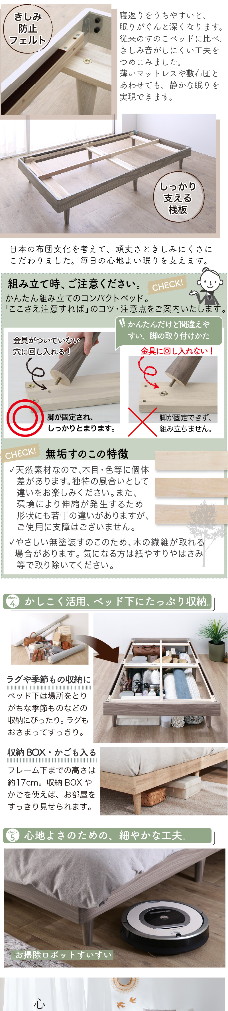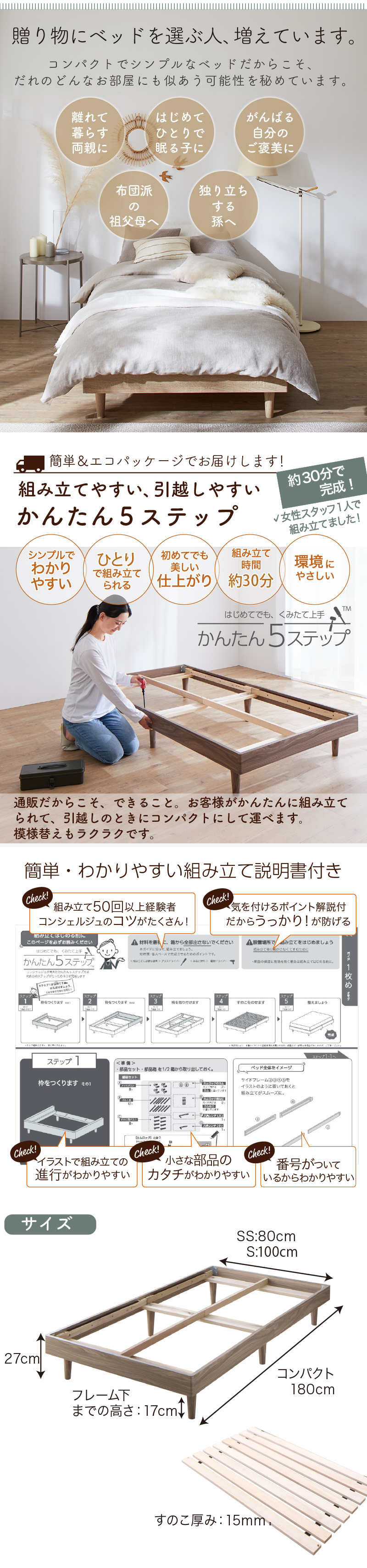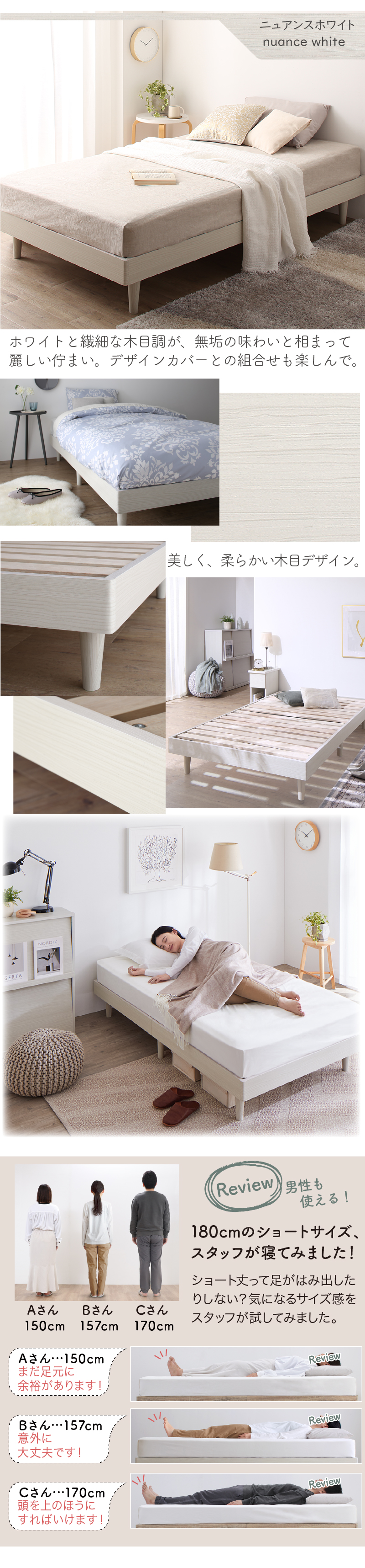ベッド すのこベッド すのこ セミシングルベッド ベッドフレーム ショート丈 ヘッドレス 脚付き 高さ調節 木製 ベット フレームのみ セミシングル コンパク ト
