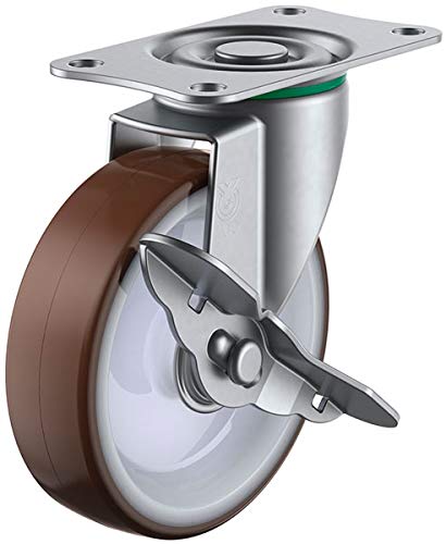 ユーエイキャスター:SUS-Eシリーズ SUS-E-S型 自在キャスター ストッパー付 ウレタン(ナイロンホイル)車 車輪径φ65 メーカー型式:SU