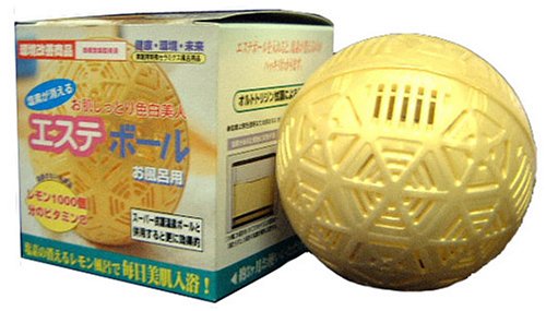 塩素の消えるレモン風呂で毎日美肌入浴!【特長】・エステボールに含まれるレモン1000個分のビタミンCと特殊セラミクスが、 タンパク質を壊す、水(湯)の有害な活性塩素を酸化還元力によって、分解し除去します。