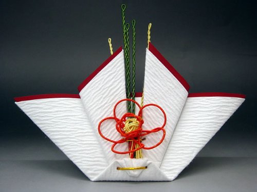 お正月の屠蘇器に飾って、お正月気分を盛り上げましょう!後ろに金の水引が付いていますので、金の水引を結びつけて屠蘇器に固定します。